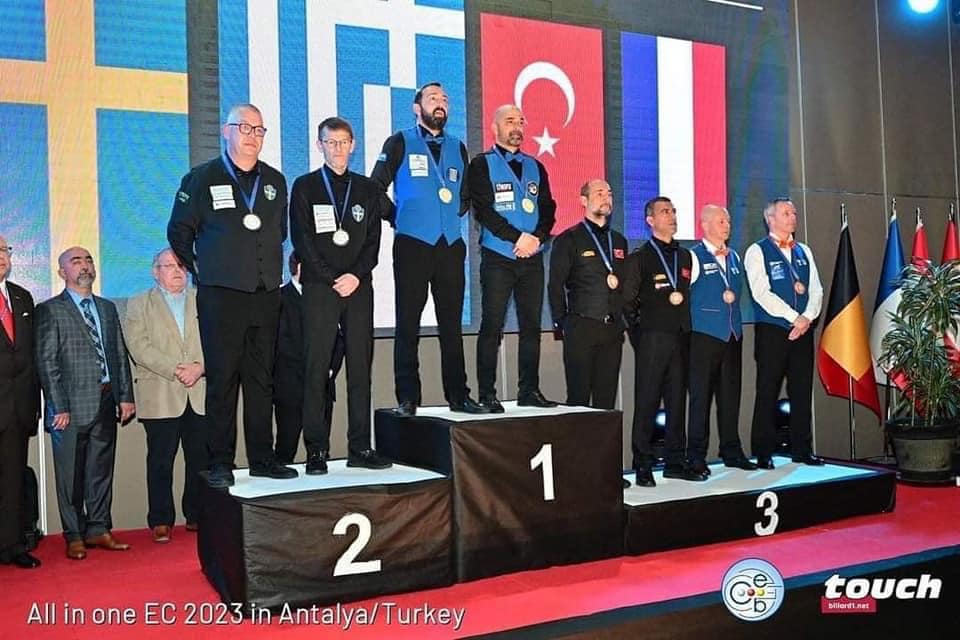 Στο Πανευρωπαϊκό Πρωτάθλημα που ολοκληρώθηκε στις 16/4 στην Αττάλεια της Τουρκίας, η Εθνική μας ομάδα με τους Νίκο Πολυχρονόπουλο (Nick Polychronopoulos) και Κώστα Κόκκορη (Kostas Kokkoris), κέρδισε το χρυσό μετάλλιο μετά από μία σειρά εξαιρετικών εμφανίσεων. Στον τελικό, κέρδισε τη Σουηδία των Torbjörn Blomdahl και Michael Nillson με 15-0 σε μόλις δύο στεκιές στην παράταση (κανονικός αγώνας 1-1).