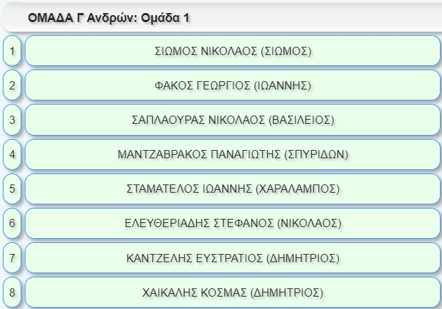 Οι πρώτοι που βλέπετε σε κάθε ομάδα, είναι και οι αρχηγοί των αντίστοιχων ομάδων και είναι οι μόνοι αρμόδιοι για τη σύνθεση των ομάδων σε κάθε αγώνα. Σε περίπτωση που ο αργηχός το επιθυμεί, μπορεί κατά περίπτωση να δώσει την αντίστοιχη εντολή σε κάποιο άλλο μέλος της ομάδας.