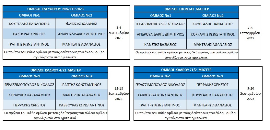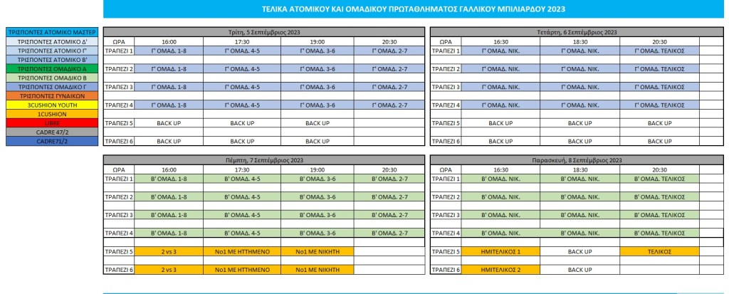 Στις τρεις τελευταίες εικόνες (με τα πολλαπλά χρώματα) μπορείτε να δείτε το γενικό πρόγραμμα, και στις πέντε πρώτες εικόνες το ειδικότερο πρόγραμμα (ομαδικό και ατομικό) για κάθε κατηγορία.